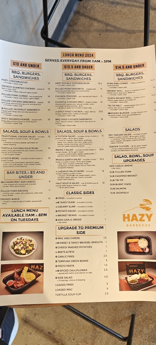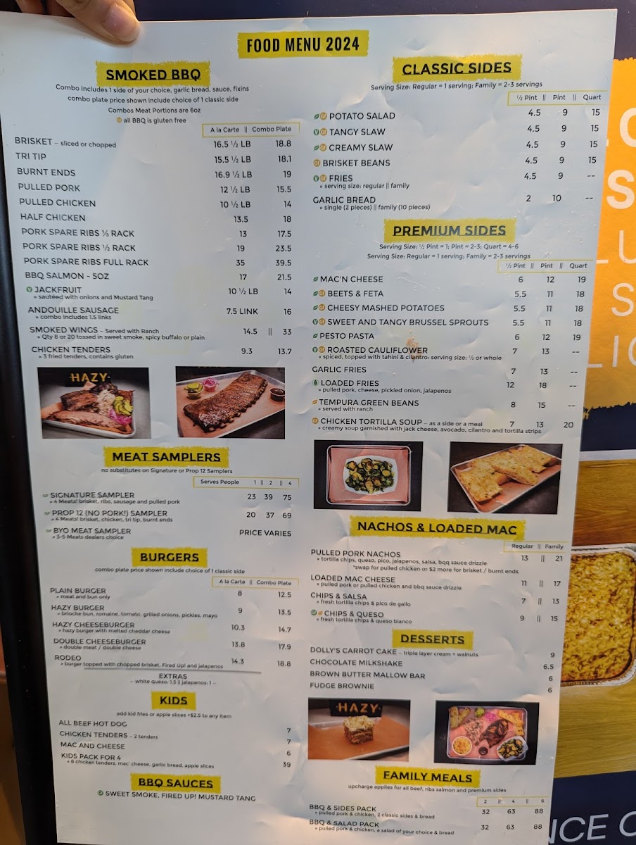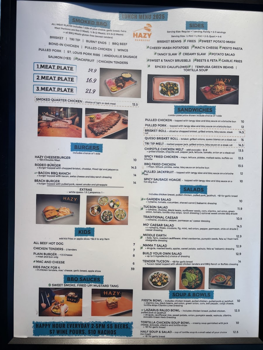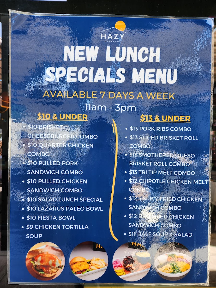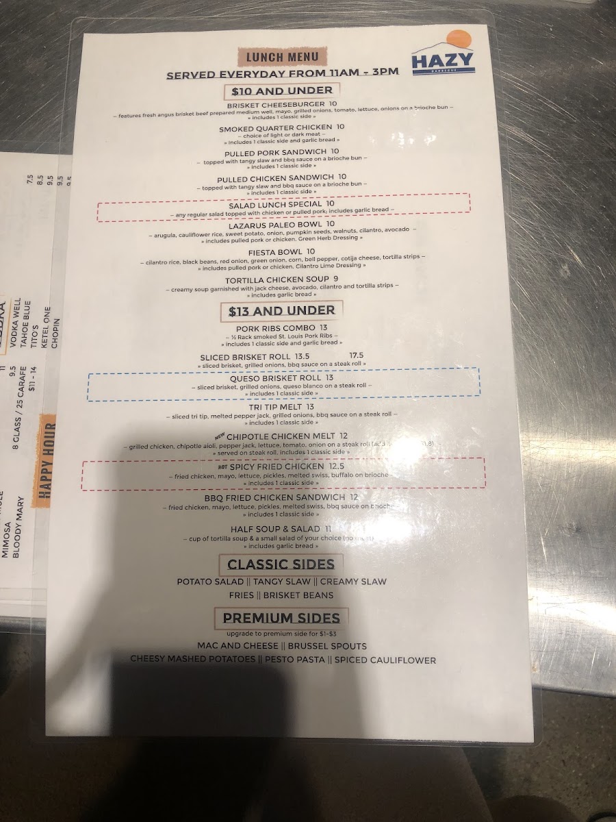 If you’re craving a hearty, flavorful barbecue meal, look no further than Hazy Barbecue Menu. Located at 200 Hartz Ave in Danville, CA, this spot is all about bringing rich, smoky flavors to the table. Whether you're in the mood for tender ribs, juicy pulled pork, or a perfectly charred brisket, there's something to satisfy every craving. Each dish is cooked to perfection, offering an unforgettable combination of spices and wood-fired goodness. Dive into the sides, from creamy mac and cheese to tangy coleslaw, all designed to complement the main dishes. With a laid-back atmosphere and mouthwatering offerings, Hazy Barbecue ensures every meal is a celebration of flavors you won’t want to miss.